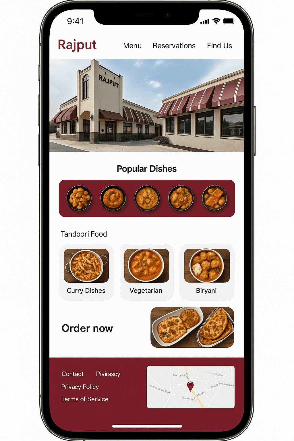 A responsive website redesign for Rajput, aimed at improving online engagement and streamlining the ordering process. The project focused on creating a modern, intuitive interface with clear menu categories, integrated delivery options, and an enhanced mobile experience to increase conversions and customer satisfaction.
